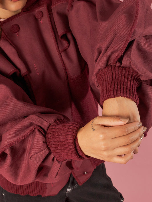 Nuestras chaquetas tejidas nacen de la fusión entre tradición y vanguardia. Cada pieza está construida en punto de alta calidad e intervenida con otros materiales cuidadosamente seleccionados, creando contrastes de textura, volumen y carácter.